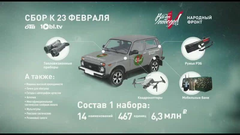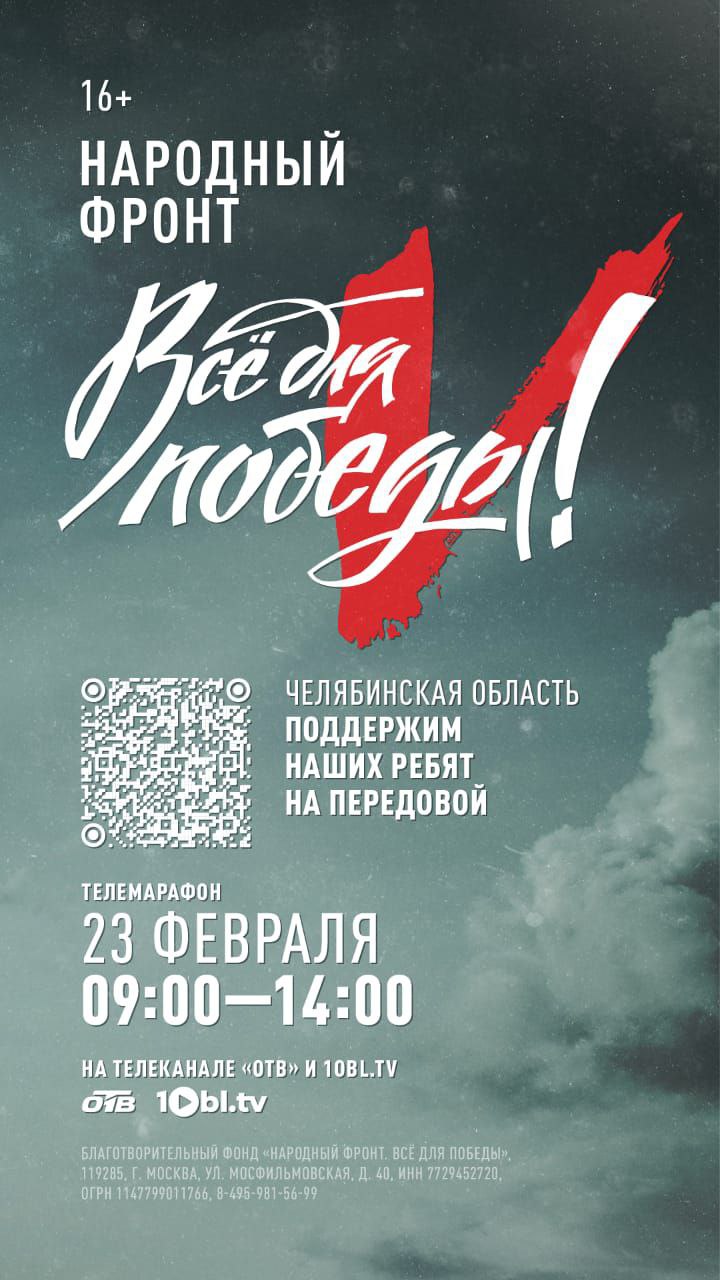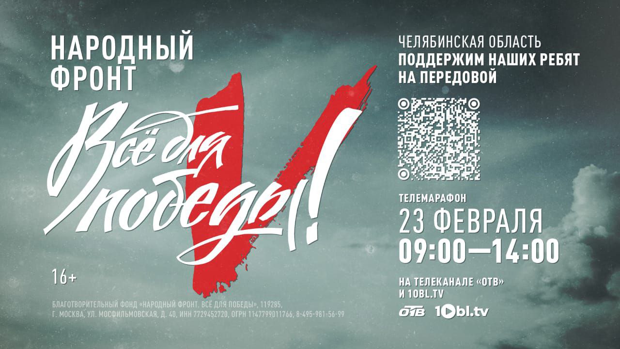Специально ко Дню защитника Отечества Народный фронт в Челябинской области совместно с медиахолдингом «Первый областной» запускает праздничный марафон для сбора средств южноуральским военнослужащим «Народный фронт. Всё для победы!».